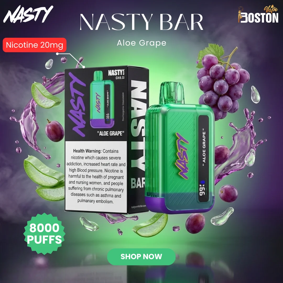 The Nasty Bar Aloe Grape 8000 Puffs Disposable Vape offers a unique mix of smooth aloe and sweet grape flavor that feels light and refreshing with every puff. The grape brings a rich fruity taste, while the aloe adds a cool, clean finish that keeps the flavor balanced. With up to 8000 puffs, this disposable vape is made for easy, long-lasting use without refilling or charging. Its compact design makes it convenient to carry anywhere while delivering steady flavor throughout the day. If you enjoy fruity vapes with a refreshing twist, this one is definitely worth trying.