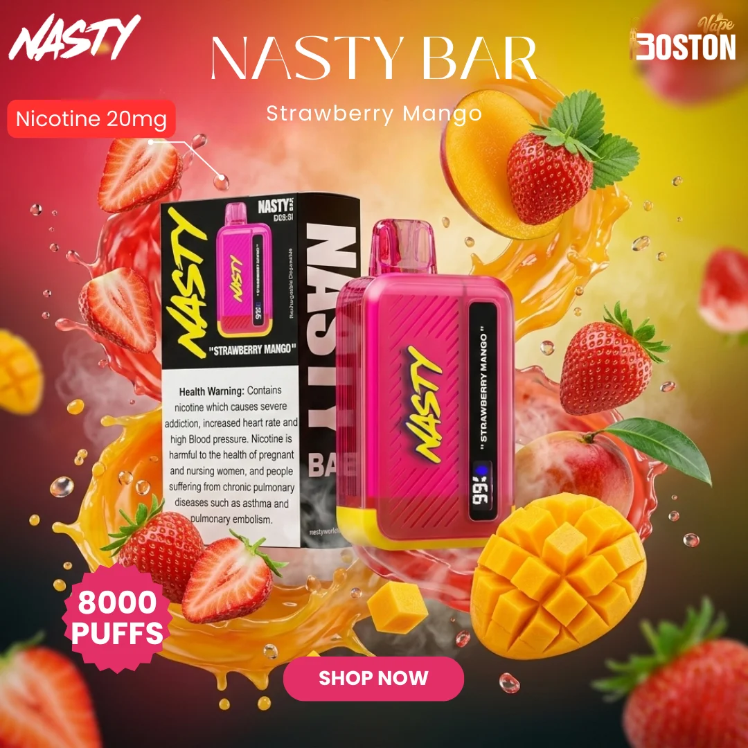 The Nasty Bar Strawberry Mango 8000 Puffs Disposable Vape blends the sweet taste of ripe strawberries with the tropical richness of mango for a smooth and fruity vaping experience. Each puff delivers a balanced mix of juicy berry sweetness and mellow tropical flavor that feels refreshing and easy to enjoy. With up to 8000 puffs, this disposable vape is designed for convenience and long-lasting use without the need for refilling or charging. Its compact design makes it easy to carry anywhere, while the flavor remains consistent from the first puff to the last. A great option for fans of fruity vape blends.